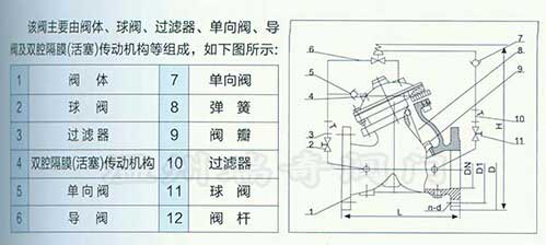DYH41X型Y型快閉止回閥由閥體、閥蓋、中心軸、銅套、閥座、閥瓣等主要零件組成,通過控制閥瓣的上下運動來實現閥門的啟閉。開泵時,閥瓣在水底推力下上升,開啟閥門,同時彈簧被簧力的作用下迅速關閉,當水流接近于0時,閥瓣完全關閉。