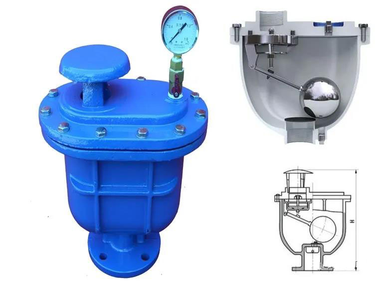 排氣閥作為快速排除管道內(nèi)氣體的設(shè)備,用來提高輸送水設(shè)備的效率和保護管道不致變形破裂,是管道的必備之設(shè)備。裝設(shè)于泵埔出口處或送配水管線中,用以大量排除管道中的集結(jié)之空氣,以增進水管及抽水機使用效率,且與管內(nèi)一旦出現(xiàn)負(fù)壓時,此閥能迅速吸入空氣,以保管線因負(fù)壓所產(chǎn)生損壞。